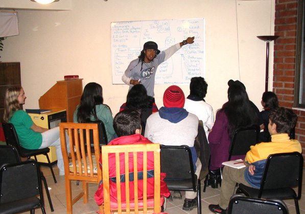 Speaking of English Club, former missionary intern Kenny Bayless from 10 years ago, came for a one week visit in June to help celebrate Jack’s birthday and to re-visit people he had worked with during his 5 months in Chile in 2006.  What a good surprise!   Kenny was also very involved with English Club at that time.  A photo of him teaching is below.  Please pray for the effective ministry of English Club and also for Kenny, who will now be the youth pastor for a church in Calgary, Canada.
