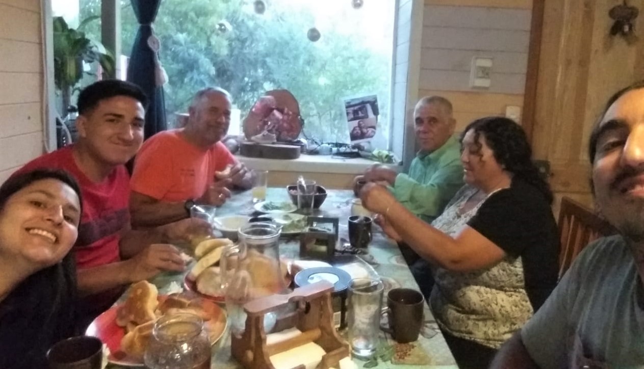 —Abraham & Cata continue to build good relationships with those that live near. Pictured are Pedro and Raquel, having a meal with us. Left to right are Cata, her brother Isaac, Jack, Pedro, Raquel, and Abraham. They are hard workers and have been able to take some of Abraham’s wood to use as firewood in the coming winter. They, too, have helped Abraham & Cata in different ways. Raquel and Abraham have an appointment to talk with the mayor of Quillón, the town responsible for public road access for residents living where we do, to improve the public road in certain key trouble spots. Pedro and Raquel are long-time residents of the area and both are definitely “doers” and not just “talkers”! 😊