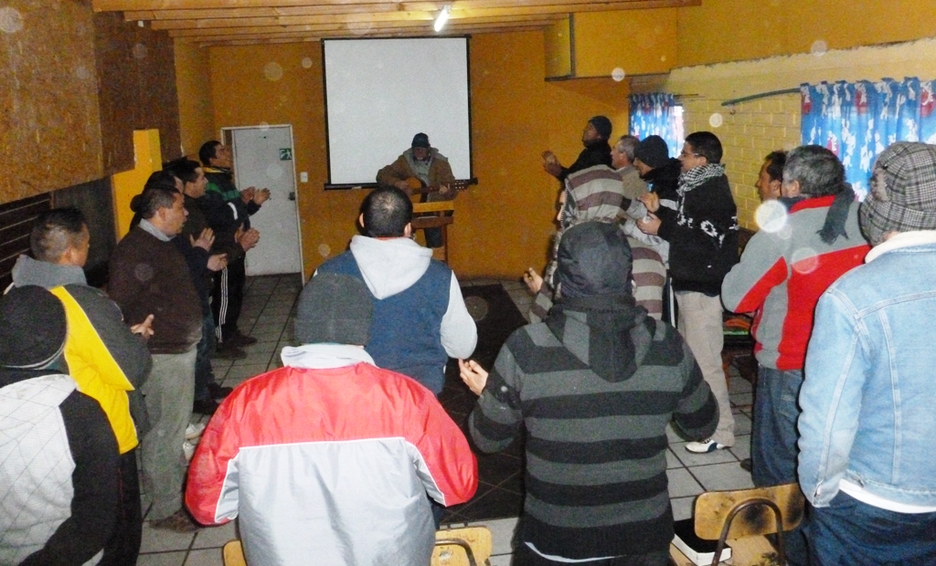 Another very important ministry connection has been with La Casa del Alfarero (the House of the Potter), a live-in Christian drug & alcohol rehabilitation center for men. Up until the 2020 Pandemic Jack did regular devotionals with the men. Drug consumption and alcoholism are serious problems in Chile. The center now has a capacity for forty men and its program lasts nine months. The men have daily morning devotionals Monday through Friday. The vast majority of the men being helped by this important ministry grow in their faith and are baptized during their nine months at the center and the center and strives to work with the whole family of the men. Pictured here are the men during a devotional praise time and after in a group photo: