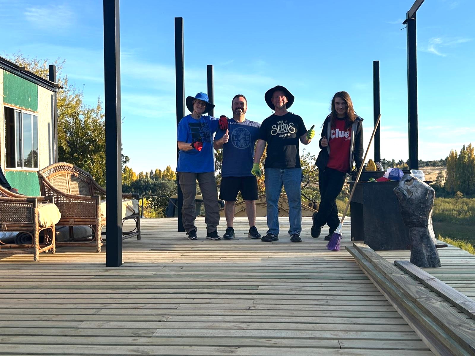 We and CHILE MISSION so appreciate your prayers and your sending us off to complete God’s work marked out by His Holy Spirit.  We also very much appreciate your coming to Chile to help!  A team of eleven from First Christian Church of Wilmington, IL, were with us in April, and then two good friends, Donn & Rick (from our home Church when our family left for language school in Aug. 1992), came to install electric service to the platform structure that is being finished being built.  Donn is also our CHILE MISSION teammate in the U.S.  Nine volunteers from Dover First Christian Church in Ohio got us off to a great start when they came in January.